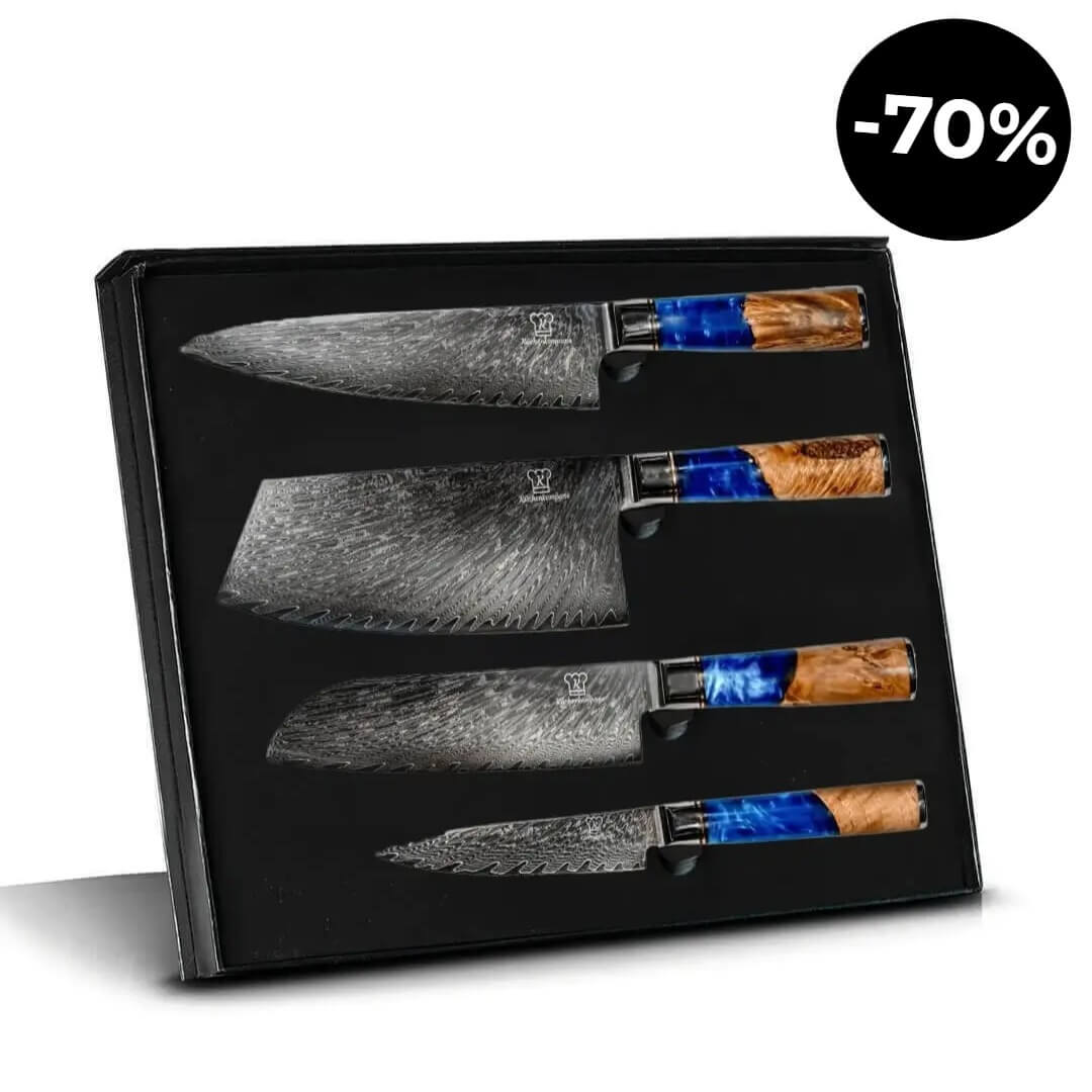 Unser exklusives Messerset bietet außergewöhnliche Schärfe und handgefertigte Qualität. Die clevere Wahl für deine Küche, ohne ständiges Nachkaufen!