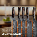 Bewahre deine Klingen sicher auf, wenn du sie nicht benutzt, indem du sie in einem Messerblock oder einem Halter deiner Wahl aufbewahrst.