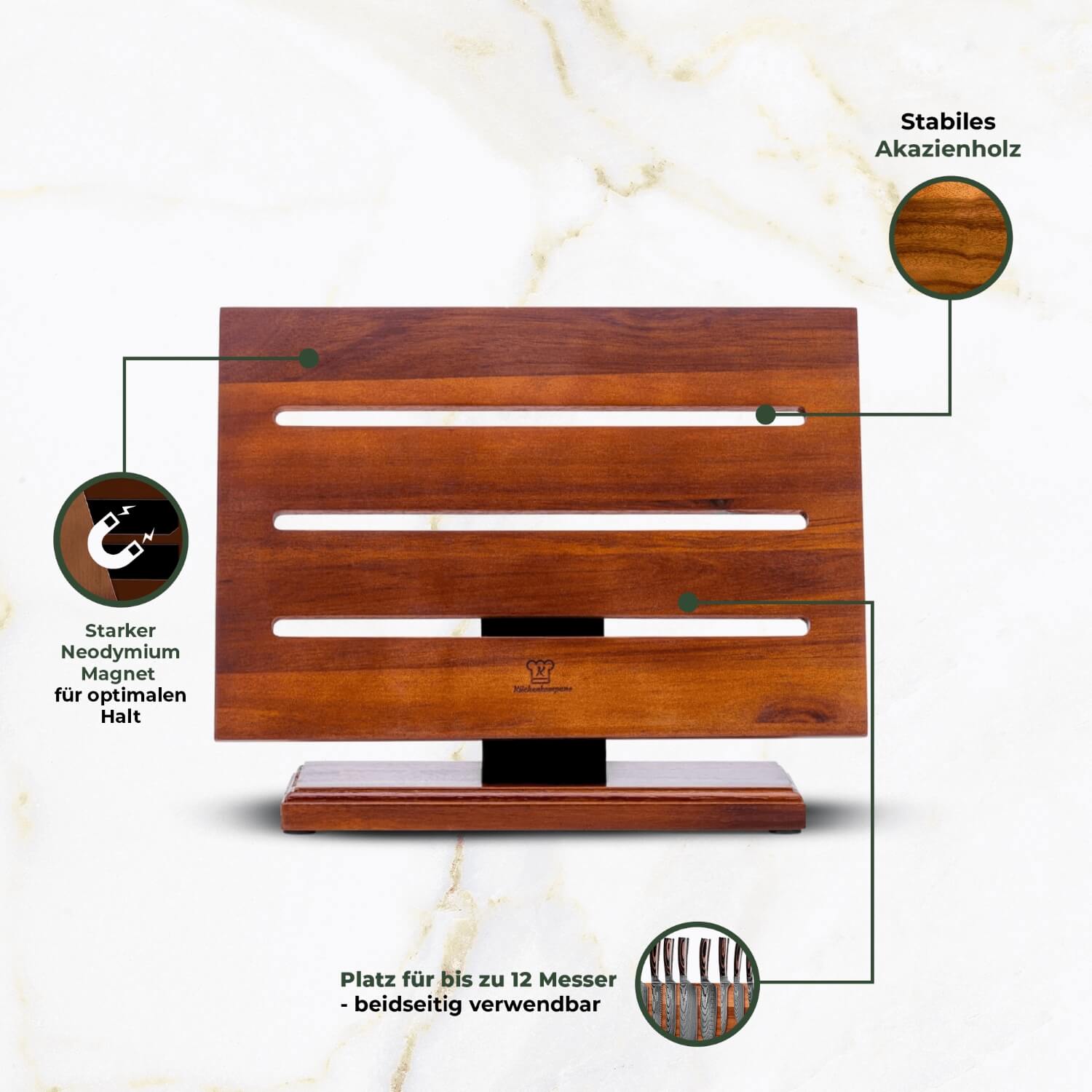Bewahre deine Klingen sicher auf, wenn du sie nicht benutzt, indem du sie in einem Messerblock oder einem Halter deiner Wahl aufbewahrst.