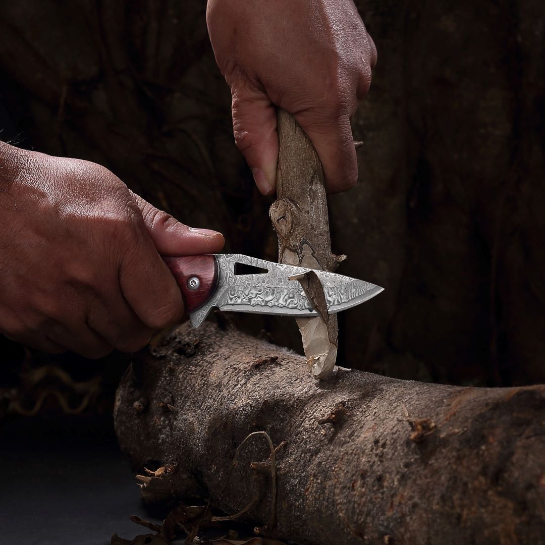 Wir setzen auf hochwertigen gehärteten Edelstahl (7CR17), bekannt für seine außergewöhnliche Schärfe, Langlebigkeit und Widerstandsfähigkeit gegen Rost und Abnutzung. Die Klingen werden von uns durch eine speziell entwickelte Methode gehärtet, um eine Härte von 60+ HRC zu erreichen.