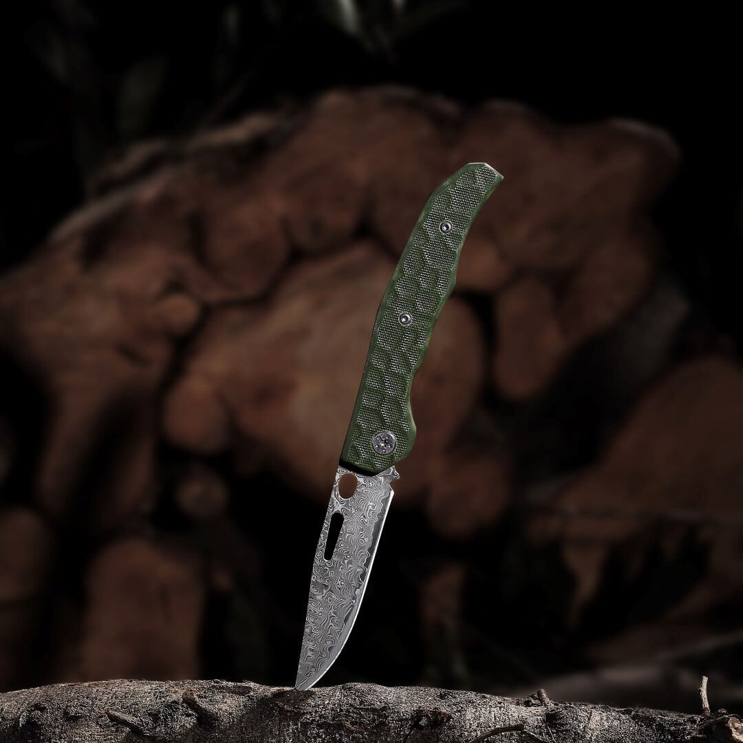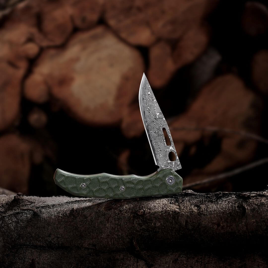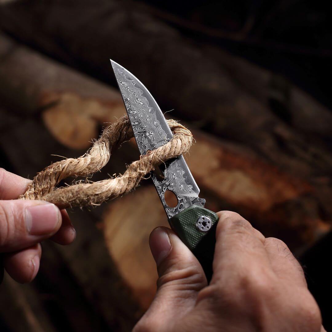 Wir setzen auf hochwertigen gehärteten Edelstahl (7CR17), bekannt für seine außergewöhnliche Schärfe, Langlebigkeit und Widerstandsfähigkeit gegen Rost und Abnutzung. Die Klingen werden von uns durch eine speziell entwickelte Methode gehärtet, um eine Härte von 60+ HRC zu erreichen.